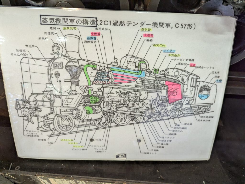 Dort wurden nicht nur verschiedene Züge und Lokomotiven gezeigt, sondern auch Tickets, Abzeichen, Konstruktionszeichnungen, Miniaturen und aufgeschnittene Technikmodelle, die die Funktionsweise anschaulich erklärten. Hier und da gab es sogar Exponate zu Schiffen und Waagen – ganz verstanden habe ich den Zusammenhang nicht, aber vermutlich ging es um Warentransport und Handel, die ja schon damals wichtige Standbeine für Transportgesellschaften waren.