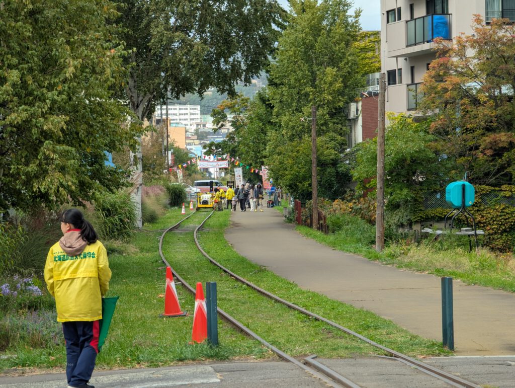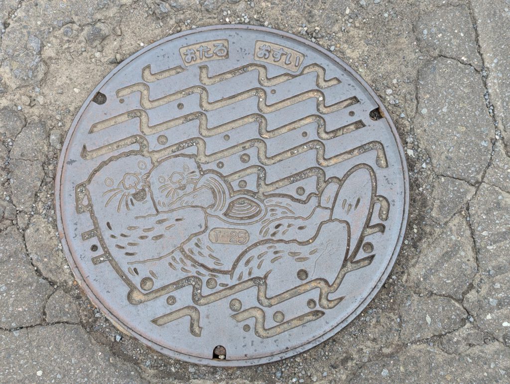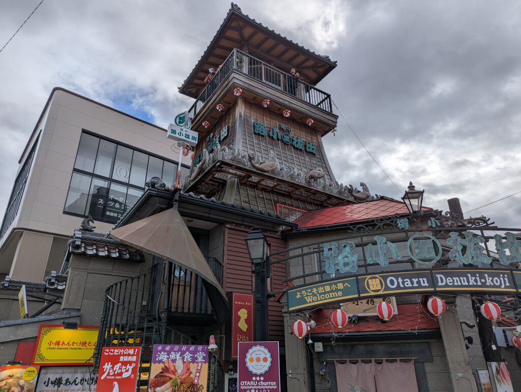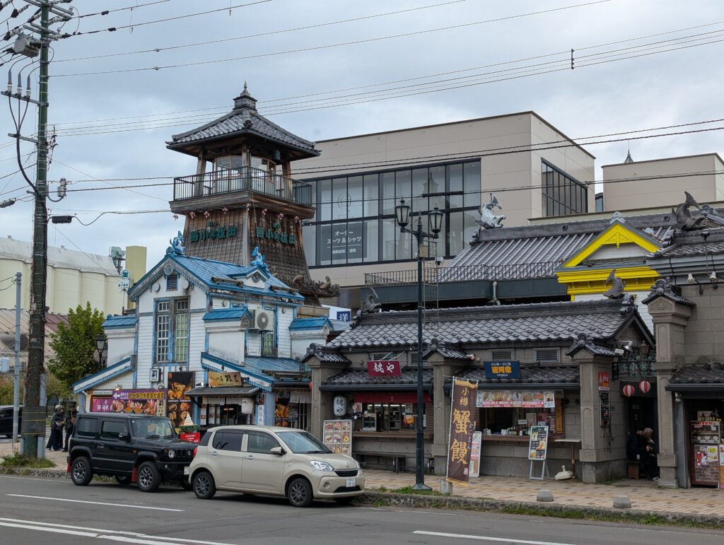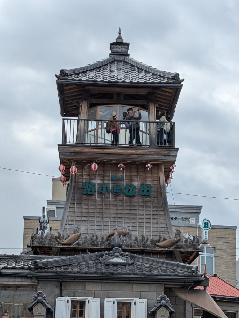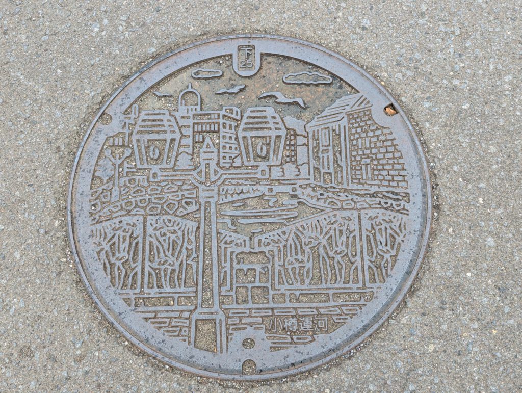 Später habe ich eine kleine Eisenbahnschiene entdeckt, auf der gerade etwas aufgebaut wurde – was genau, konnte ich nicht erkennen. Dafür gab es in der Umgebung wieder wunderschöne Kanaldeckel und viele alte Gebäude, die Otaru ihren besonderen Charme verleihen.