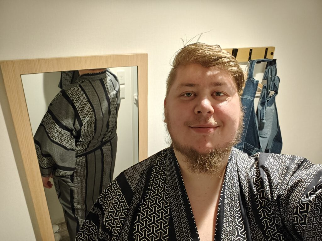 Ich habe einige Stunden gebraucht, um die Läden zu finden, die auch größere Größen führen, bin dann aber bei Musubi fündig geworden. Dort hatte ich zwei richtig schöne Modelle zur Auswahl – aber einer reicht erstmal. Schließlich will ich mir ja auch noch einen Jinbei und einen Haori zulegen.