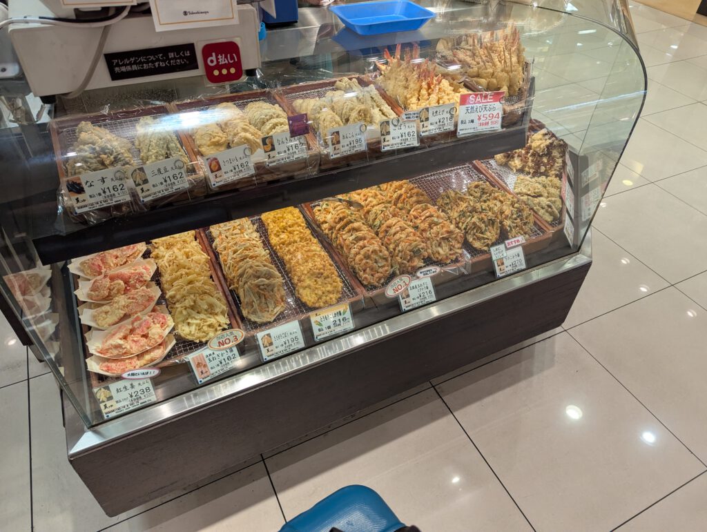 Wie gewohnt war meine erste Anlaufstelle Namba – genauer gesagt das riesige unterirdische Feinschmeckerparadies.Dort habe ich mir aus verschiedensten Läden ein richtig tolles Bento für die Shinkansen-Fahrt nach Shizuoka zusammengestellt.Wenn man schon 70 € für die Zugfahrt bezahlt, darf es wenigstens kulinarisch etwas hermachen.