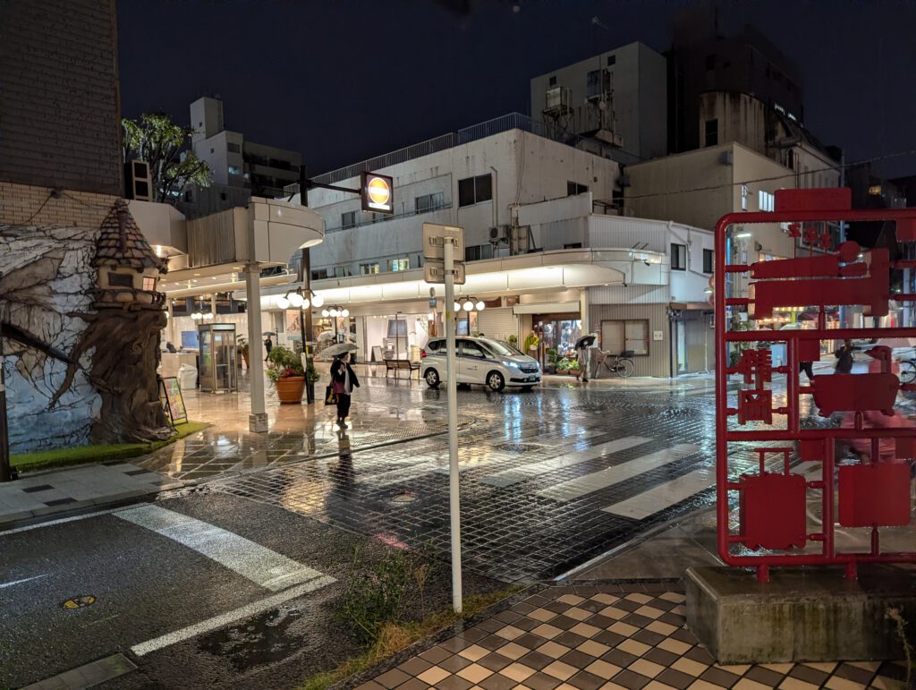 In Shizuoka angekommen, begrüßte mich – Überraschung! – Regen. Und laut Vorhersage sollte das auch bis in die Nacht so bleiben. Also schnell die Bushaltestelle gesucht, die mir Google Maps angezeigt hat.
