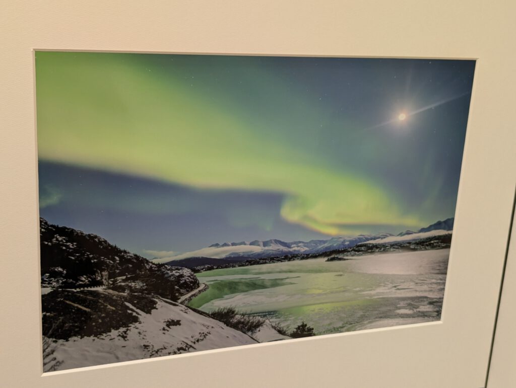 Kurz darauf entdeckte ich eine Kunstausstellung eines lokalen Fotografen und schaute sie mir an. Wir kamen ins Gespräch – er erzählte mir von seiner Arbeit in Kanada und Hokkaido und teilte die Hintergrundgeschichten zu einigen seiner Bilder.