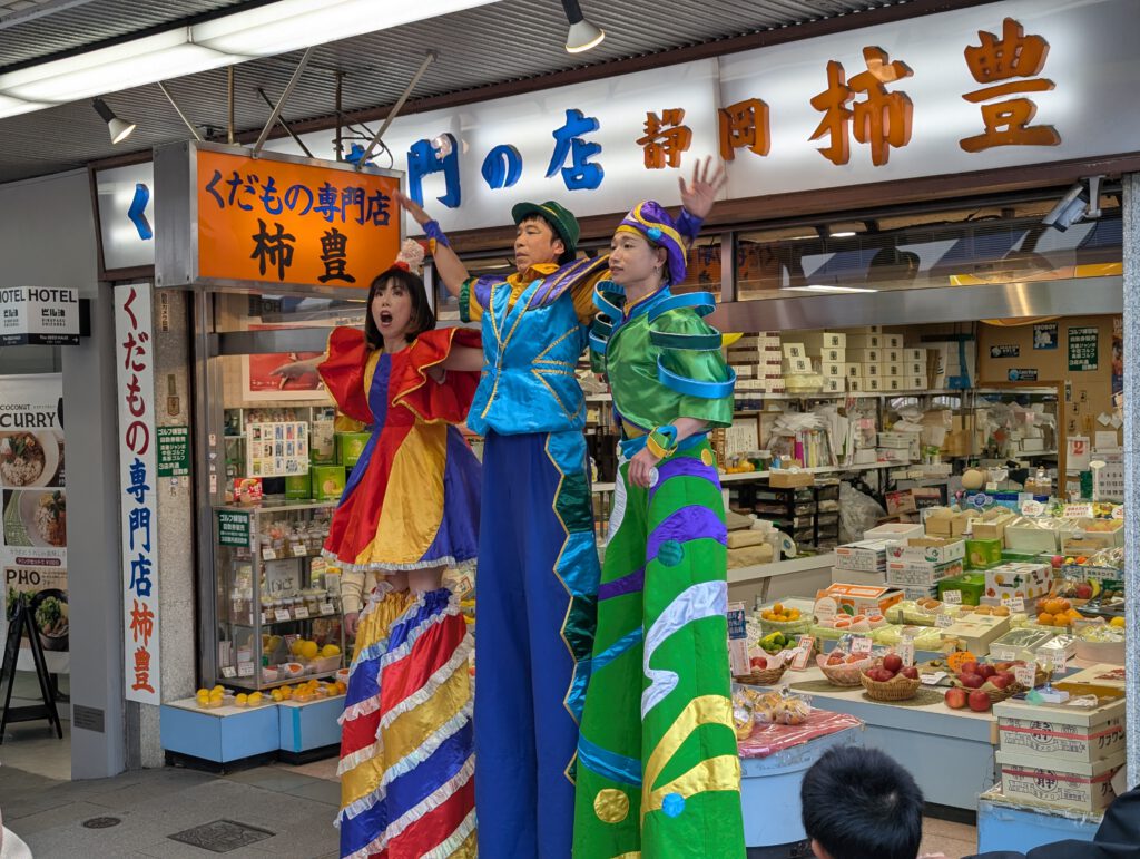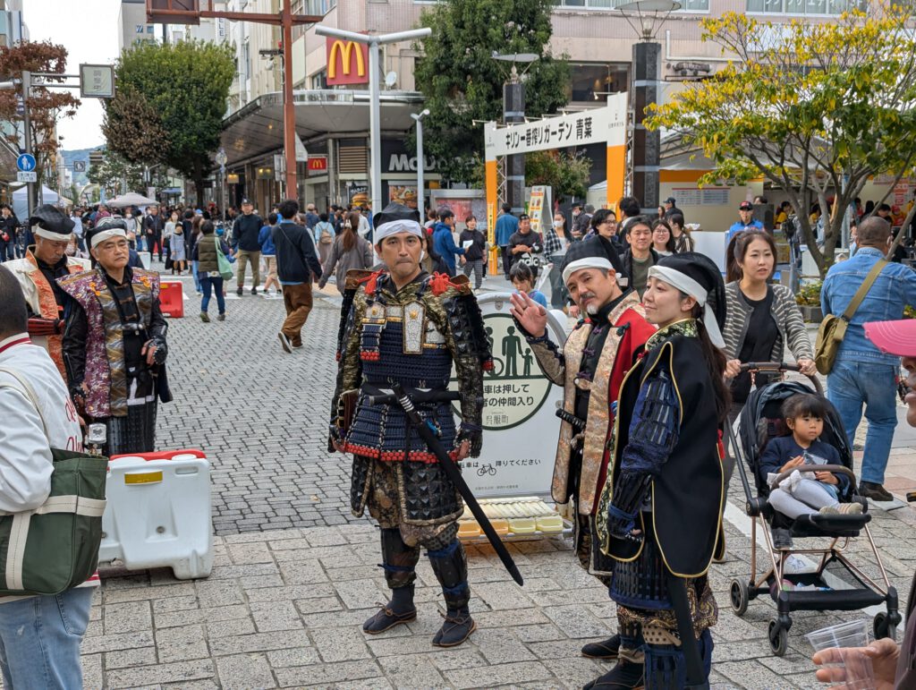 Und das war nicht schwer: Überall zogen kleine Gruppen wie Paraden durch die Straßen, es gab Handwerksstände, Straßenbands und sogar eine Taiko-Trommeltruppe mit Flötenspielerin an einem Tempel.