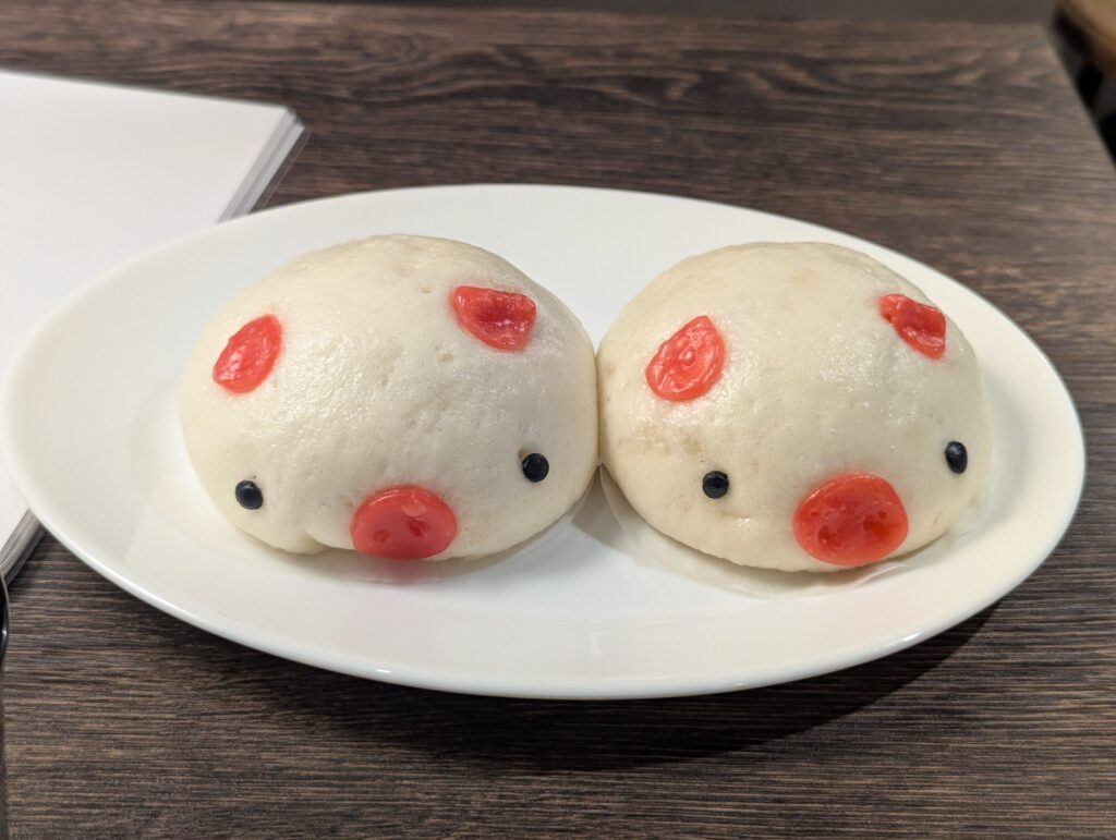 Auf dem Rückweg bin ich an einem kleinen Laden vorbeigekommen, der unglaublich niedliche Nikuman und Butaman verkauft – das sind gedämpfte Teigtaschen mit herzhafter Füllung.