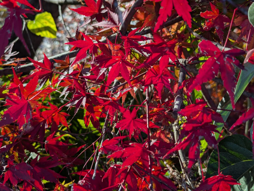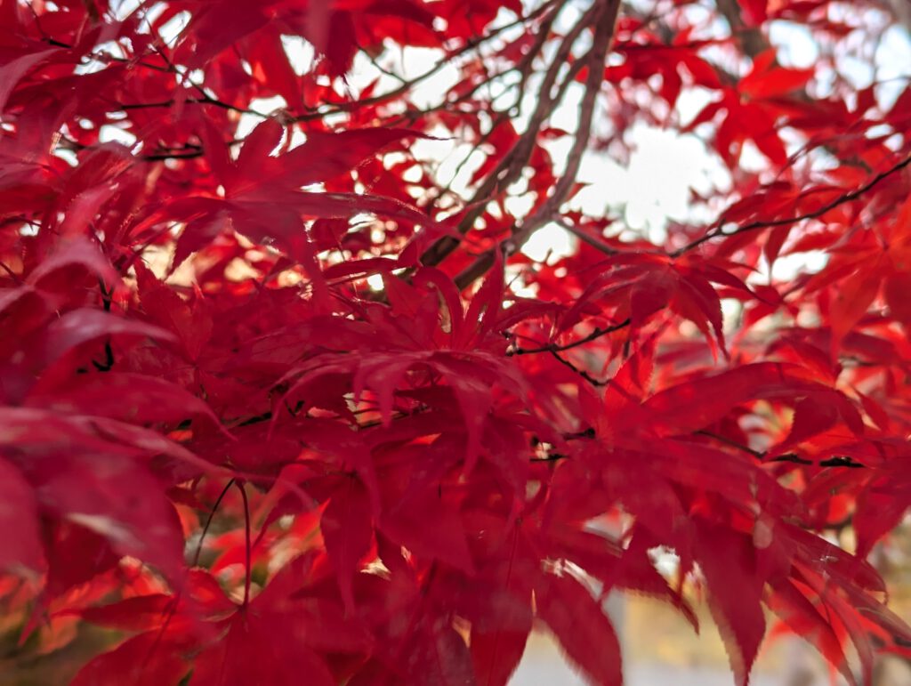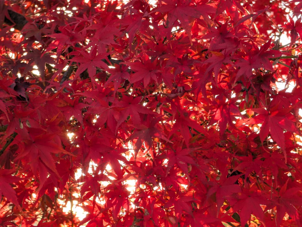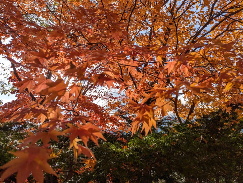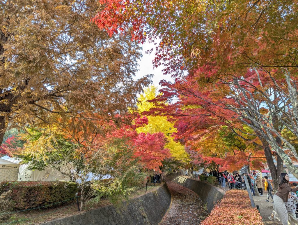 Besonders bekannt ist hier der sogenannte Maple Corridor – ein Kanal, der vom Norden zum Kawaguchi-ko führt und auf beiden Seiten mit Ahornbäumen gesäumt ist, die gerade jetzt in den schönsten Herbstfarben leuchten.