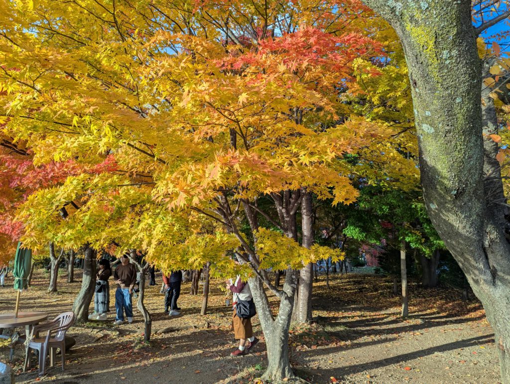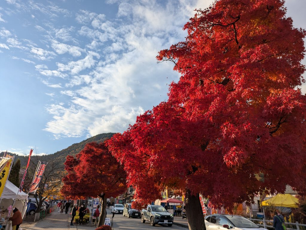 Leider hat sich Fuji-san heute nicht gezeigt, also blieb es bei Bildern vom Herbstlaub – aber die waren dafür umso schöner. Ich bin gemütlich durch die vielen Stände entlang der Straßen und Plätze geschlendert und habe mir alles angesehen.