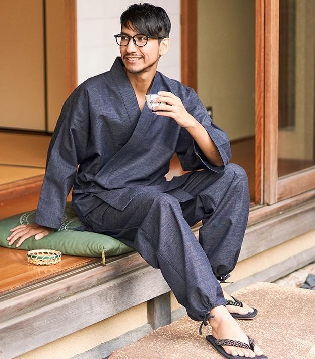 Yukata mit Gürtel (Obi) und Jacke (Haori)